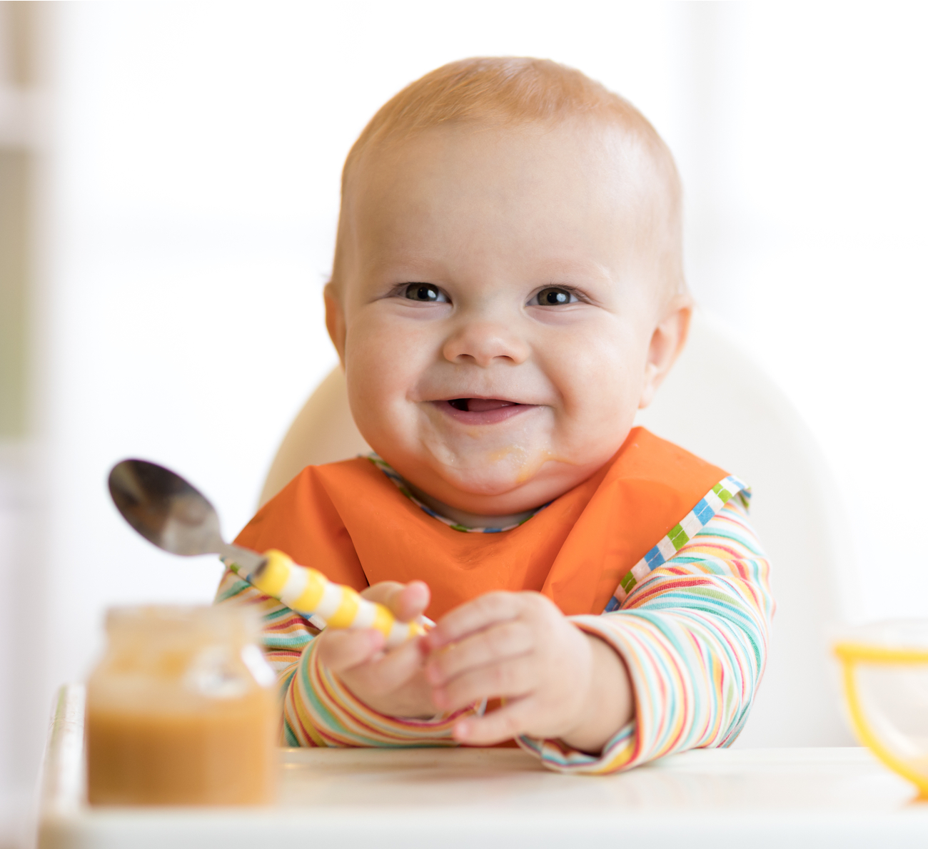 Em geral, a alimentação complementar da criança é iniciada após o sexto mês de vida, e através de frutinhas in natura e papinhas de legumes, contemplando a pirâmide alimentar, composta por sais minerais, verduras, legumes, proteínas e gorduras.